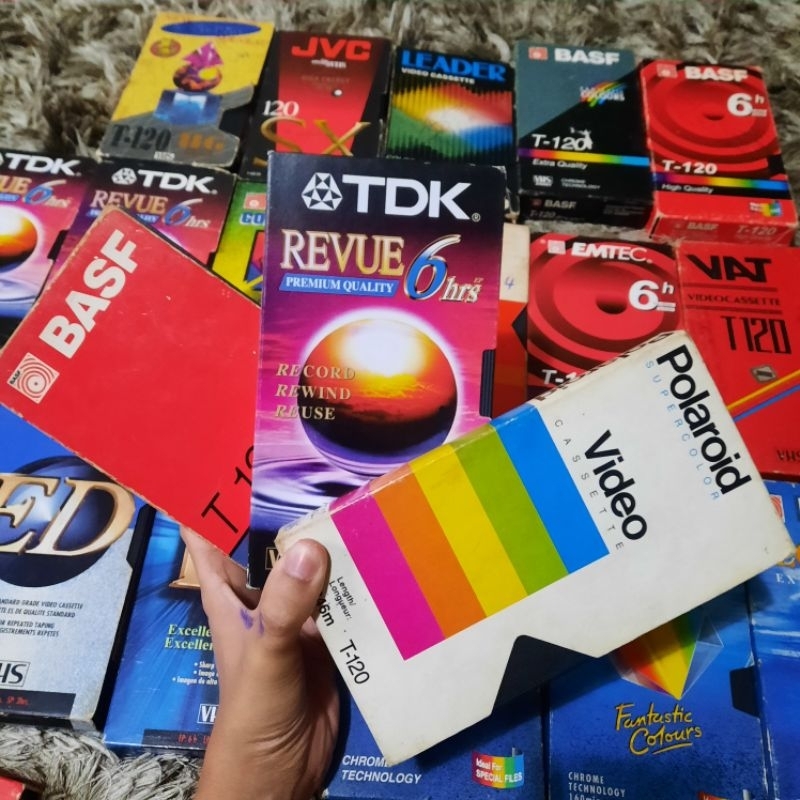 Fitas VHS Regraváveis Variadas - BASF, EMTEC, Sony, TDK, Polaroid, Samsung, JVC, Leader, VAT, Philips, Decoração, Festa Anos 70, 80, 90 Artesanato Virgem