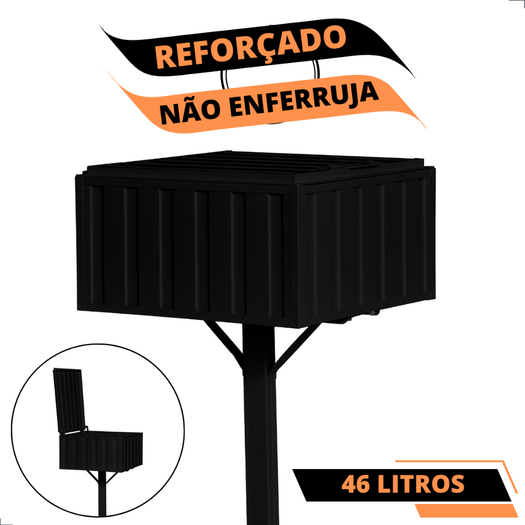 Lixeira Para Calçada de Rua Condomínio Com Tampa Anticorrosiva