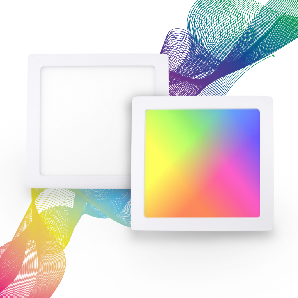 Luminária Painel Led RGB Plafon Spot Smart RGB 18W Sobrepor Wi-Fi Quadrado Ekaza Alexa Inteligente Automação Residencial