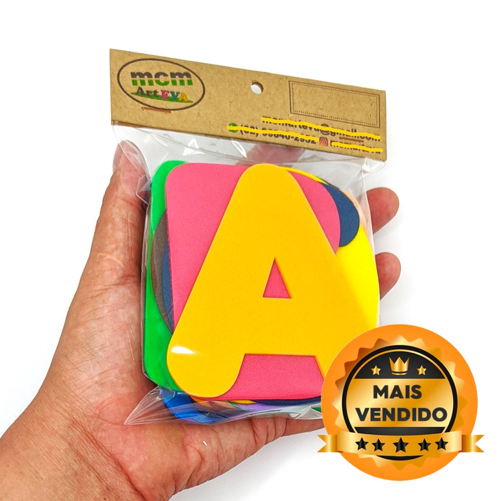 Alfabeto em EVA 26 Letras Grande 10cm Muito Coloridos em 13 Cores Diferentes
