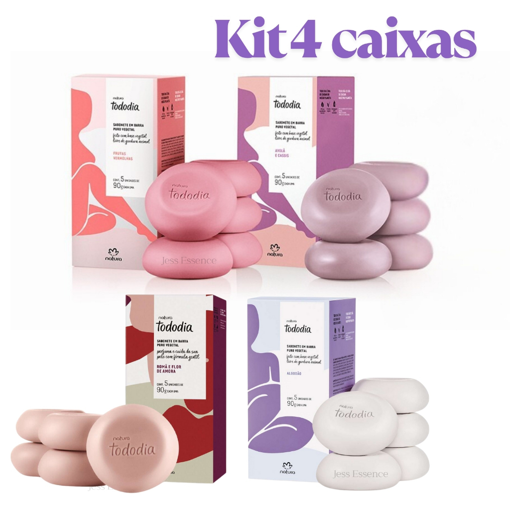 Kit 4 Caixas Sabonetes Natura Tododia Frutas Vermelhas, Avelã, Algodão, Romã e Flor de Amora
