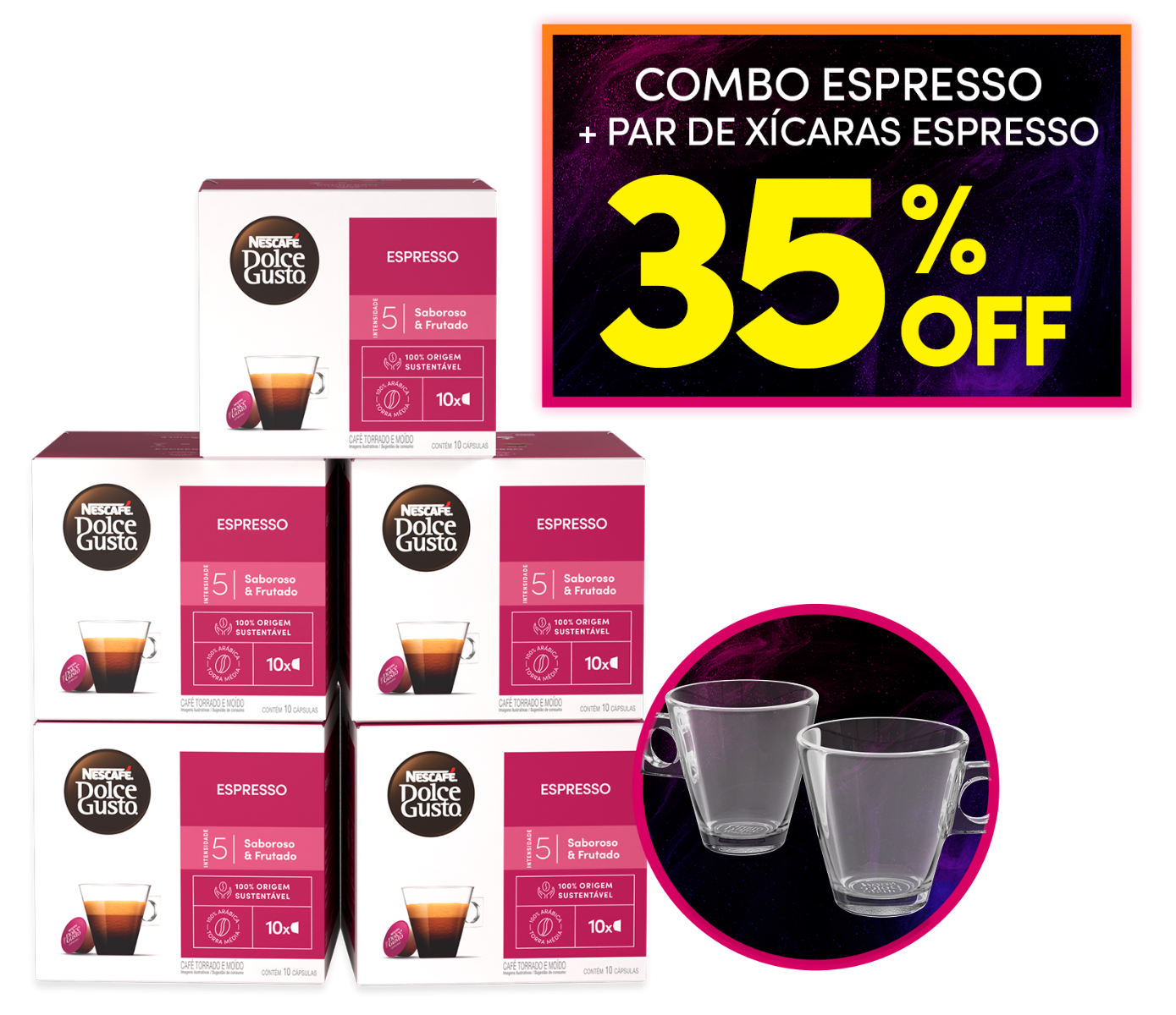 COMBO ESPRESSO 5 CAIXAS + PAR DE XÍCARAS 35% OFF
