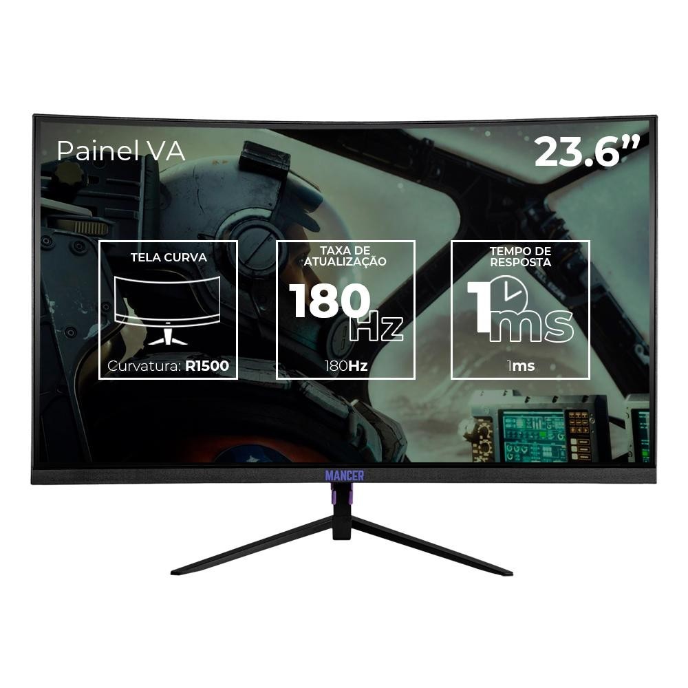 Monitor Gamer Mancer Valak, 23.6 Pol VA, Curvo, FHD, 1ms, 180Hz, FreeSync e G-Sync, HDMI/DP, MCR-VLK24-BL01