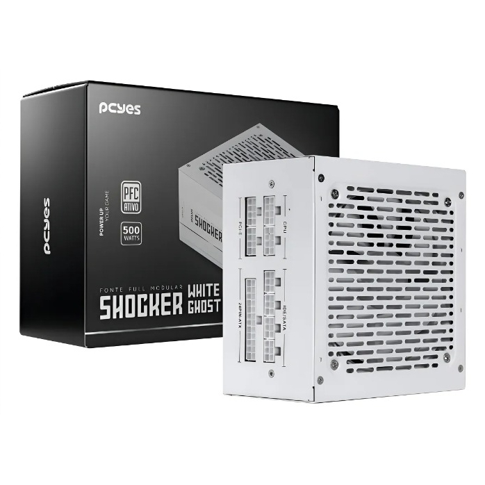 Fonte De Alimentação Gamer PCyes Shocker Full Modular 500w 80 Plus White - White Ghost
