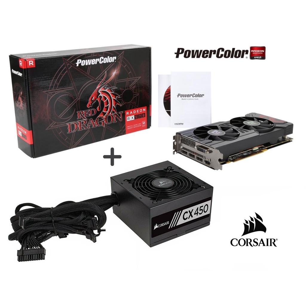 Kit Placa de Vídeo AMD Radeon PowerColor RX 570 4GB + Fonte Corsair CX450 450W CP-9020120-WW
