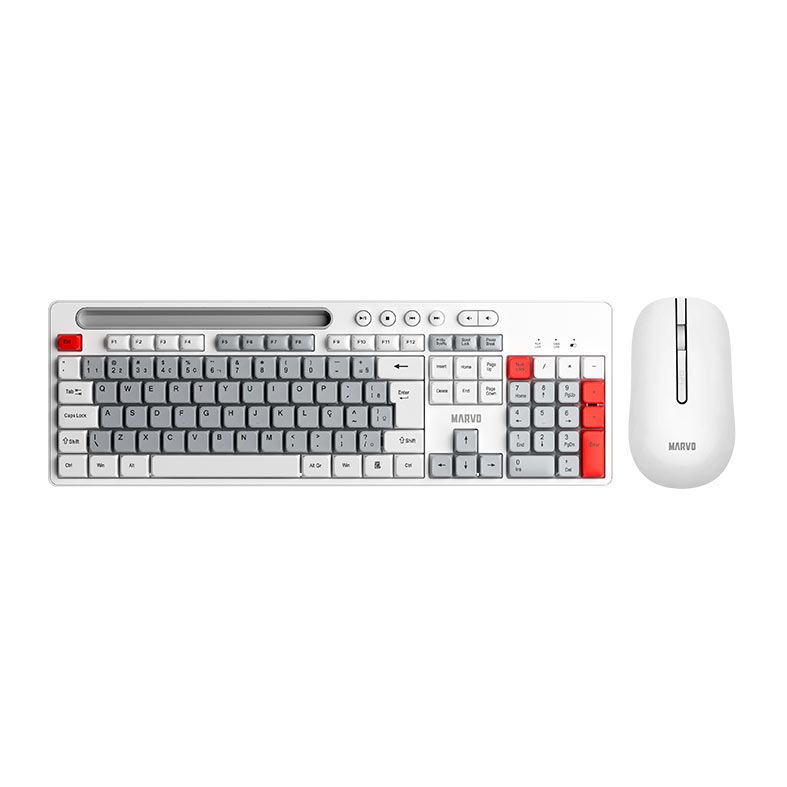 OPENBOX Kit Teclado e Mouse Marvo WS009, ABNT2, 1600DPI, Wireless, Branco e Cinza, WS009-PT