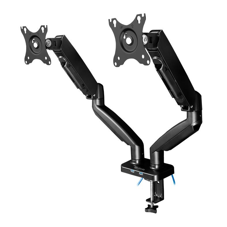 Suporte Articulado Para Dois Monitores Zinnia Nimbo 210, 13 Pol a 32 Pol, USB 3.0, Preto, ZNO-USB210-BL01