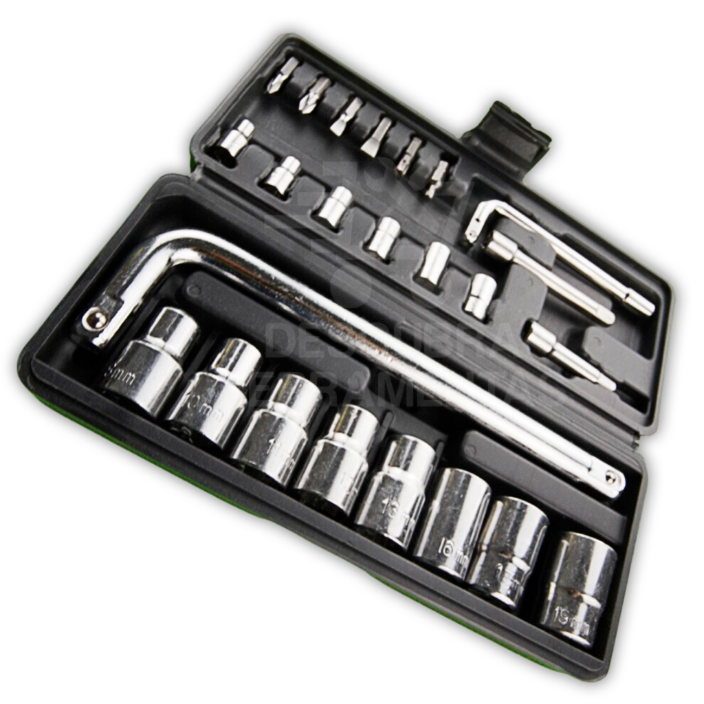 Jogo de Soquetes Sextavados Com Chaves e Bits 1/4” e ½” e Maleta 24 Peças Titanium