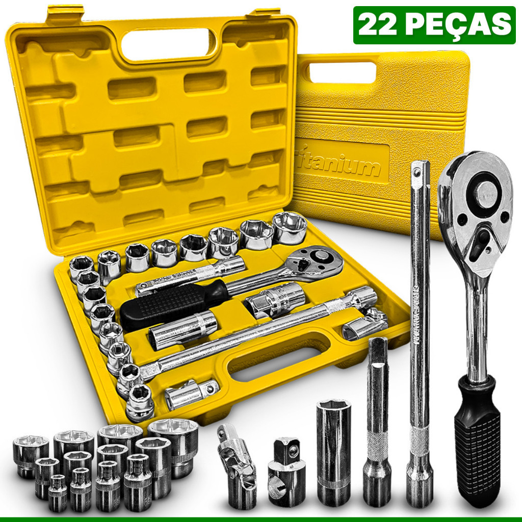 Jogo de Soquetes Chave Catraca 1/4 com Maleta 22 Peças - Titanium