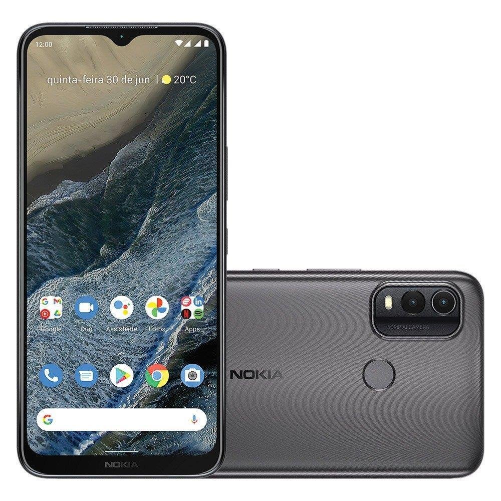 Smartphone Nokia G11 Plus NK095 Cinza 4G 128GB (64GB memória interna + 64GB via cartão de memória), 3GB RAM, Tela 6,5" e Processador Octa-Core