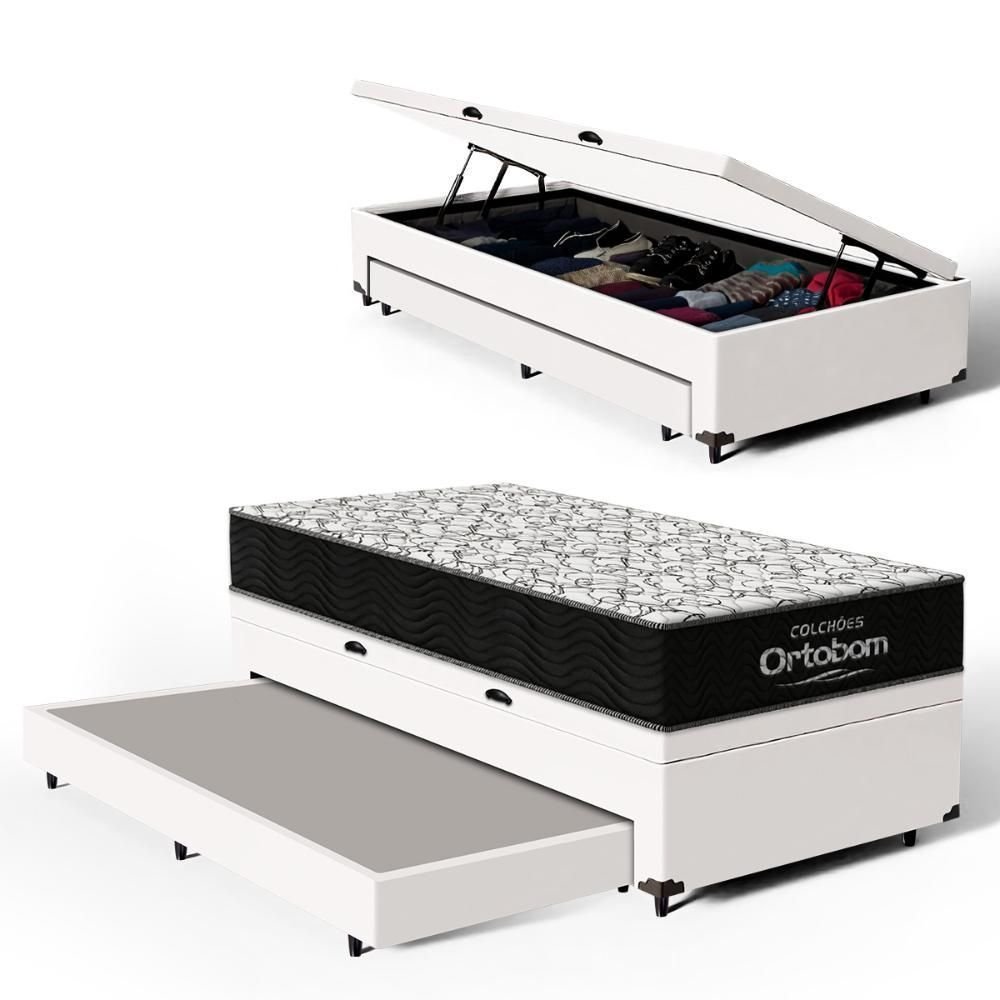 Cama Box Baú com Colchão de Espuma D45 Ortobom Airtech 150 + Auxiliar Unique Solteiro 88cm