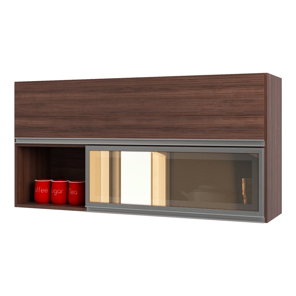 Armário Aéreo Com 2 Portas e Vidro Reflecta 120cm Evidence Amêndoa Poliman Móveis