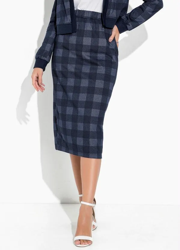 Rosalie - Saia Xadrez Marinho com Fenda Moda Evangélica