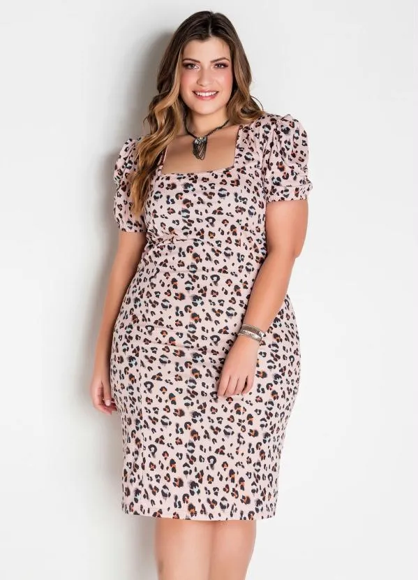 Marguerite - Vestido Mangas Princesa Onça Rosê Plus Size