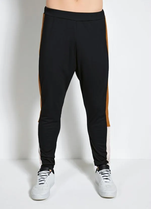 Moda Pop - Calça Preta com Filetes Brancos nas Laterais