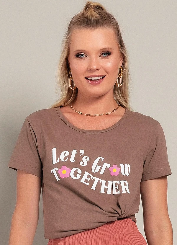 Moda Pop - Blusa Marrom Claro em Malha de Algodão