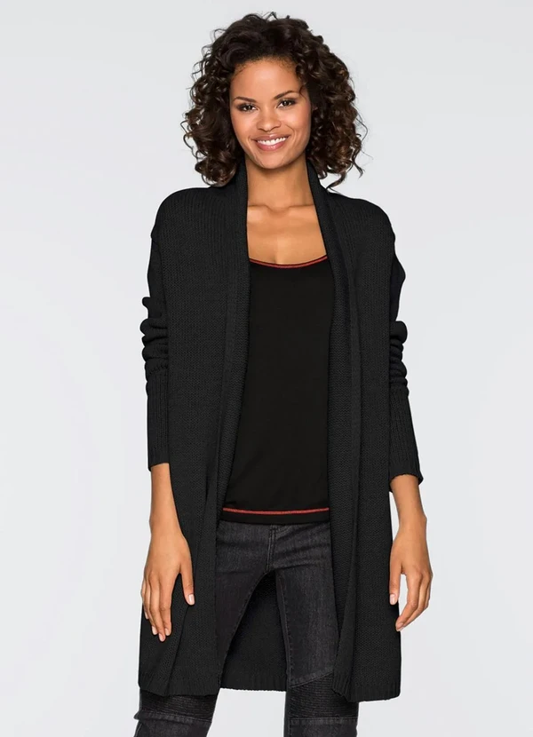 bonprix - Cardigan de Tricô Alongado Xadrez Preto