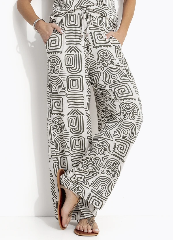 Quintess - Calça Étnico Verde em Malha de Viscose