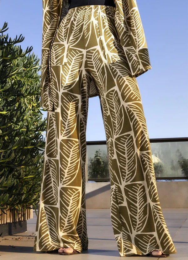 Quintess - Calça Folhagem Abstrata em Malha de Viscose Text