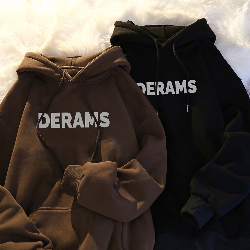 Outono-Inverno Americano Estilo Universitário Mais Veludo Alfabeto Retro Impressão Capuz Casaco Com Homens E Mulheres Moda Solto Manga Longa