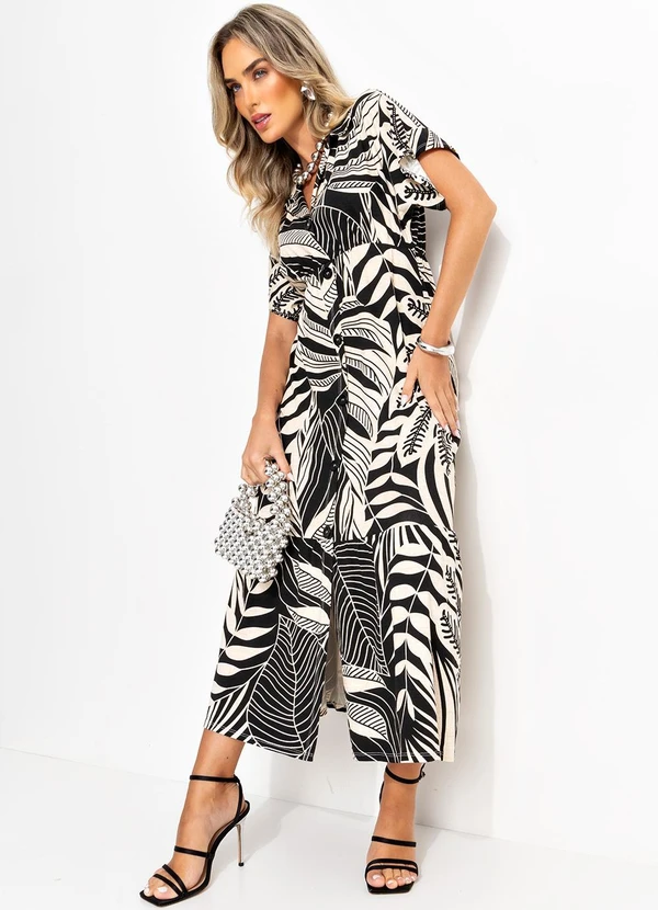 Quintess - Vestido Folhagem Linho em Malha de Viscose