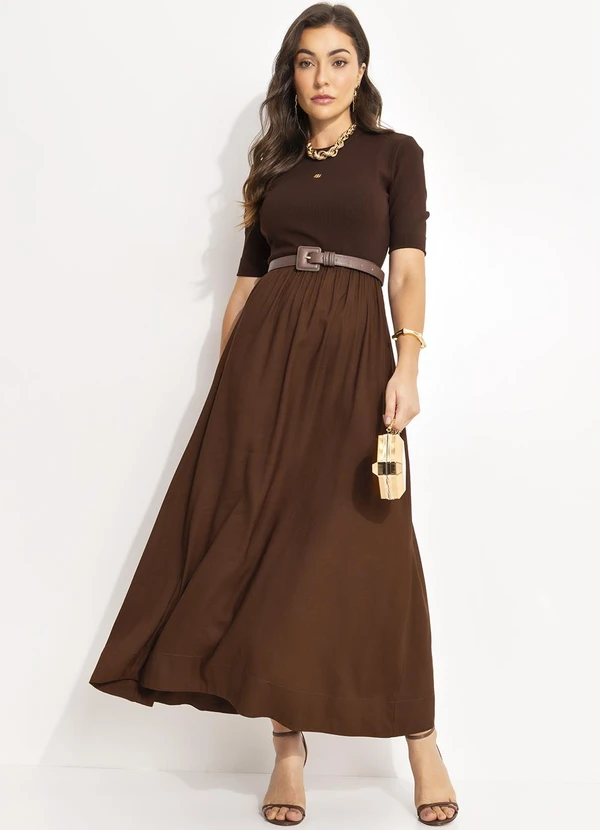 Colcci - Vestido Linho Detalhe Canelado Marrom