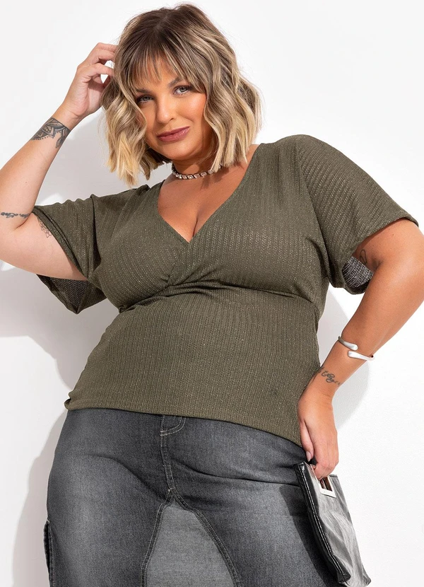 Marguerite - Blusa Verde Oliva em Malha Metalizada