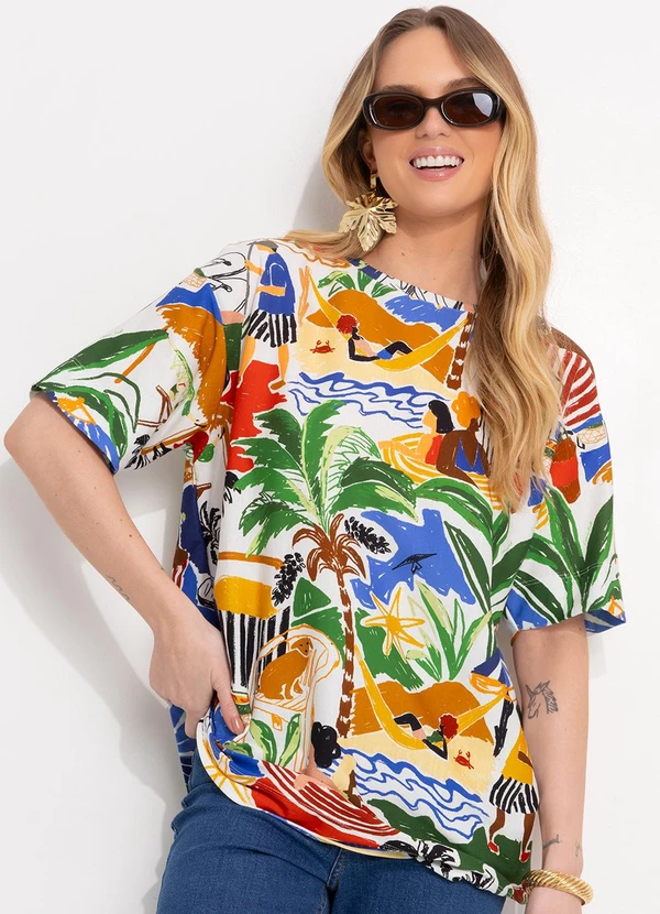 Farm - Vestido T-Shirt de Malha Delicadeza de Arara Preto