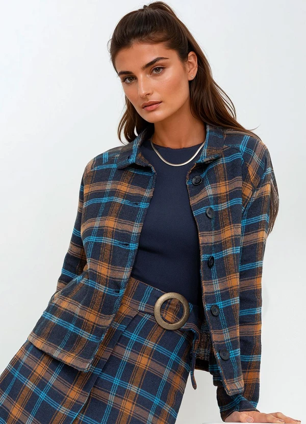 bonprix - Casaco Xadrez Escuro em Flanela