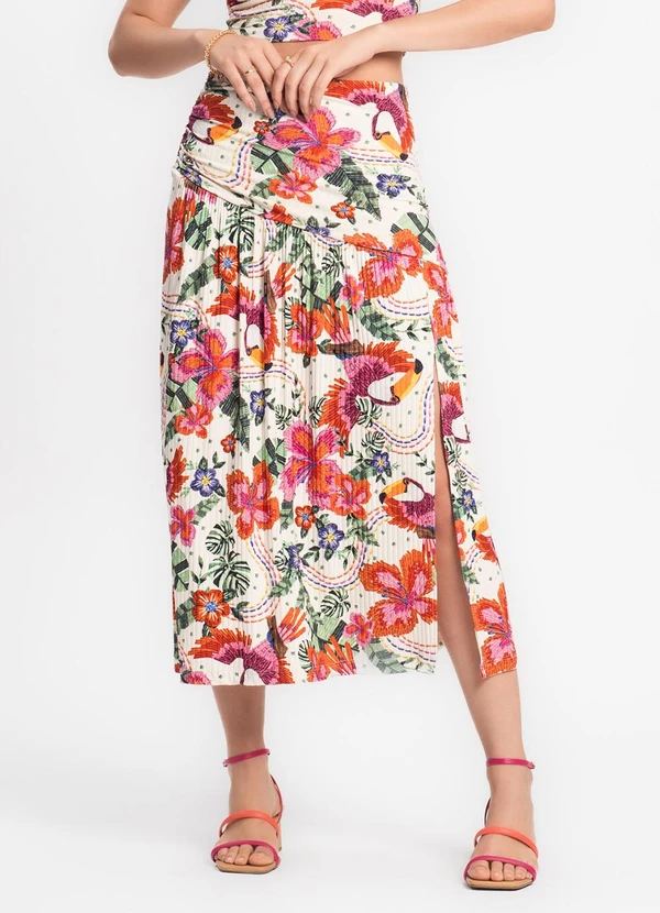 Saia Endless Sarja Feminina Rovitex Midi com Fenda e Bolsos Bege