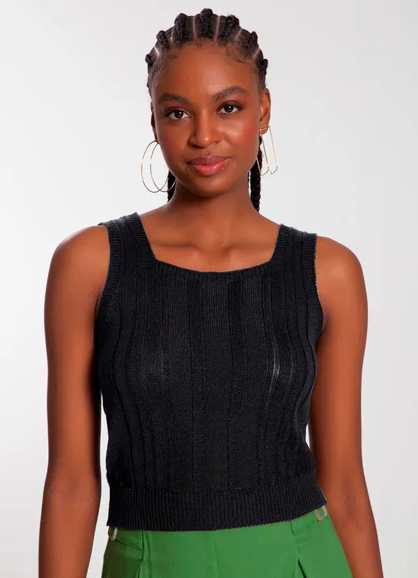 Lunender - Blusa em Malha Viscose com Gola Alta Preto