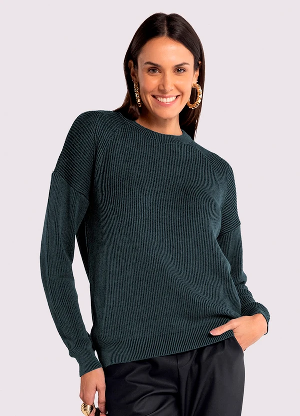 Lunender - Blusão em Tricô com Decote Redondo Cinza