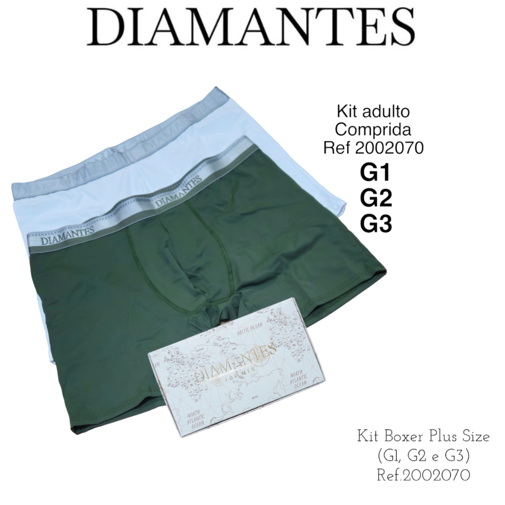 Kit com 2 Cuecas Boxer Extra Grande Plus Size Em Microfibra Diamantes For Men