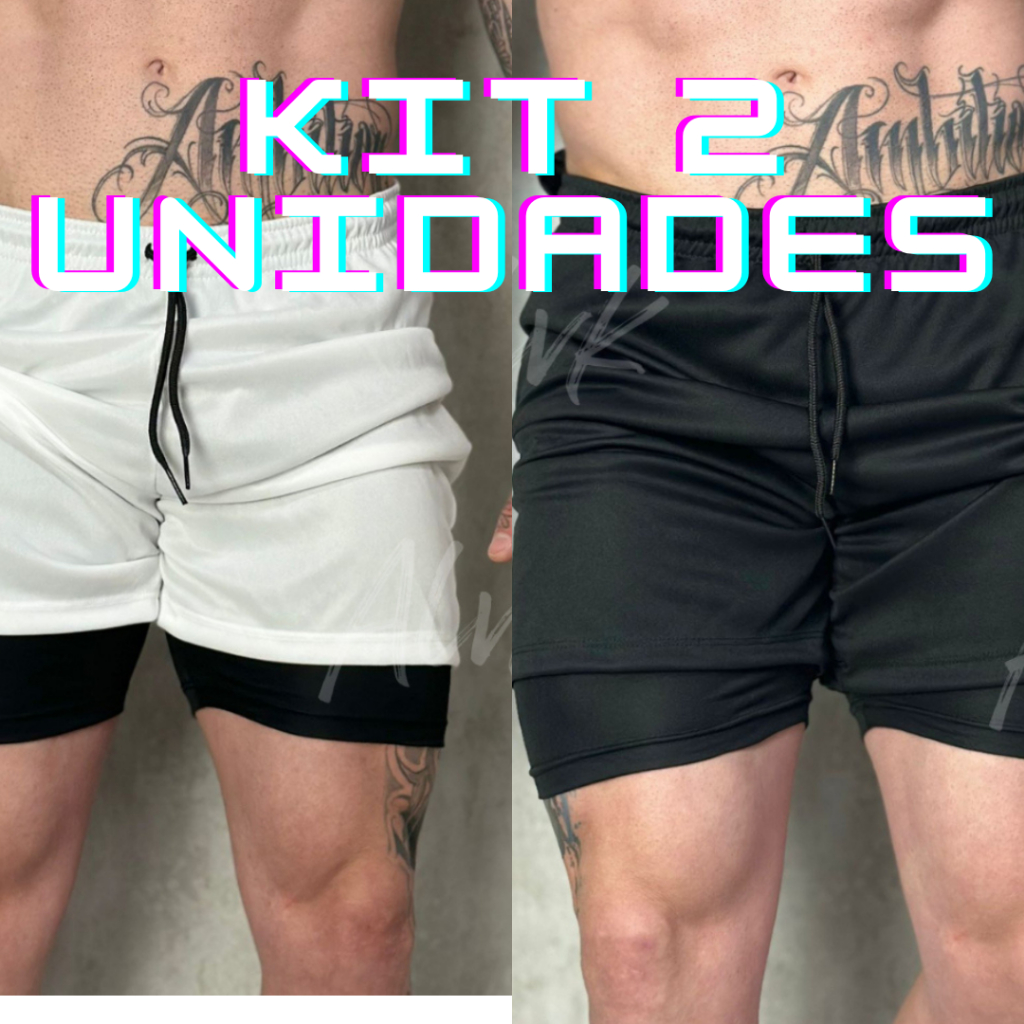 kit 2 Bermuda 2 Em 1 Shorts Masculino Dry Fit Run Academia Fitness Esportiva