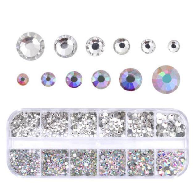 Kit Estojo Strass Transparente Colorido Furta cor com Fundo Plano em Vários Tamanhos para Decoração 3D de Unha Artística / Manicure