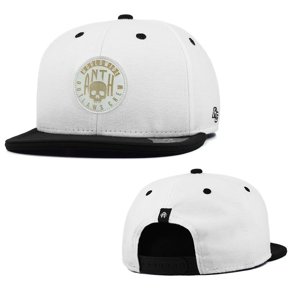 Boné Anth Co. Ollie Branco Preto Aba Reta Aberto Com Ajuste