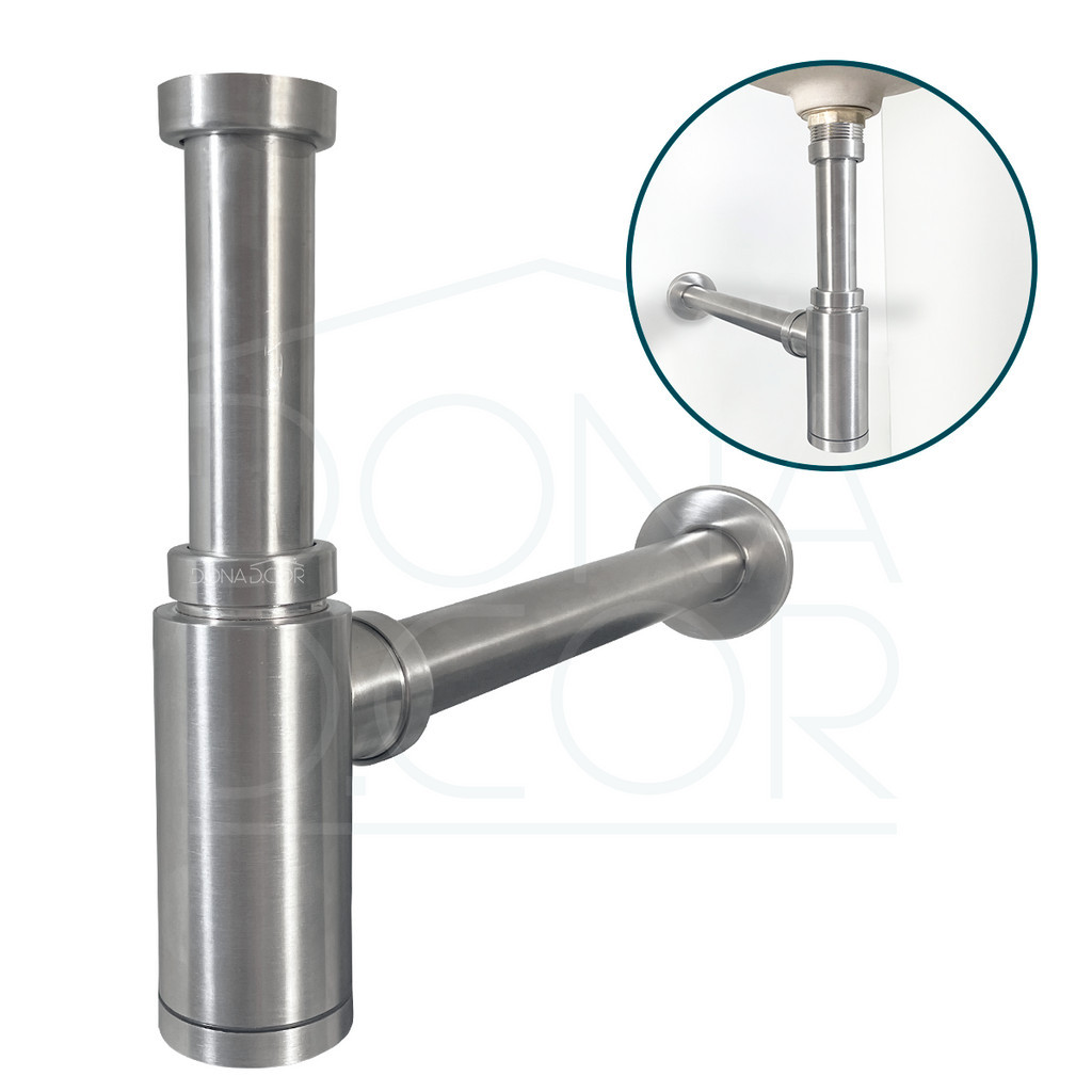 Sifão Copo Inox Escovado Universal Pia Suspensa Banheiro 7/8 e 1 1/4 Sifao Para Cuba Aparente Lavabo Luxo Quadrado Aço Inox 304 Fosco Parede Lavatorio
