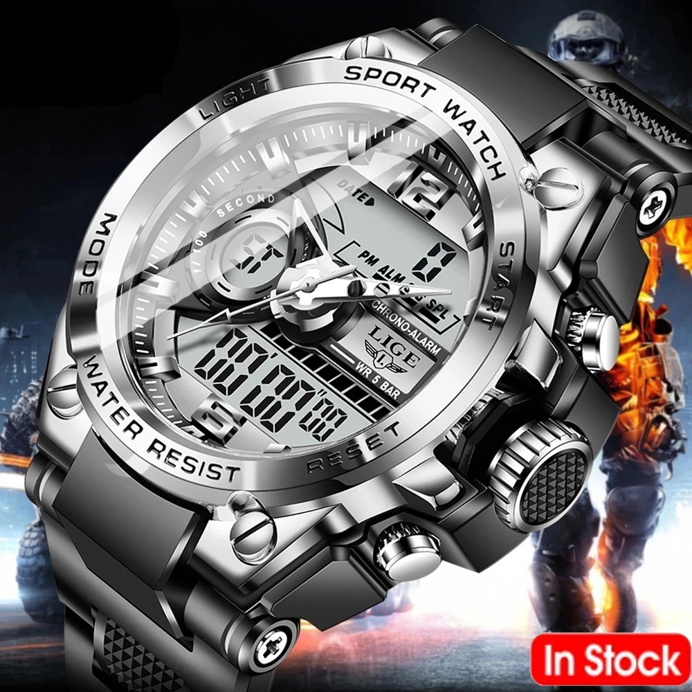 Relógio masculino LIGE Novo Estilo Dual Display Digital Homens Relógio Esportes Dos À Prova D'água De Quartzo Mecânico + Caixa Original