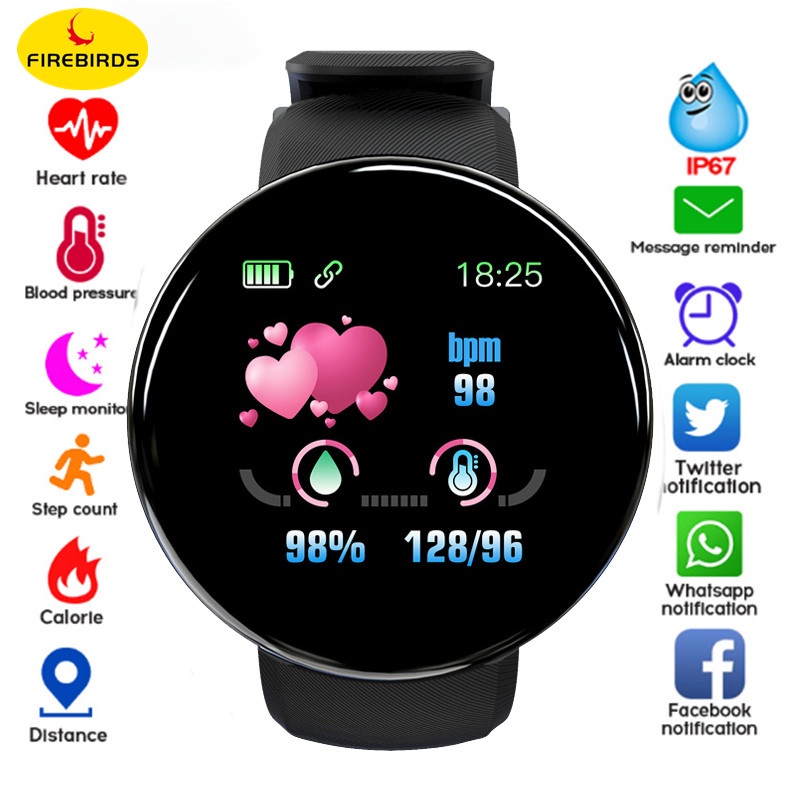 (FIREBIRDS) Novo Relógio Das Mulheres Dos Homens Pulseira LED D18 Smartwatch Inteligente À Prova D'água De Tela De Toque Smartband