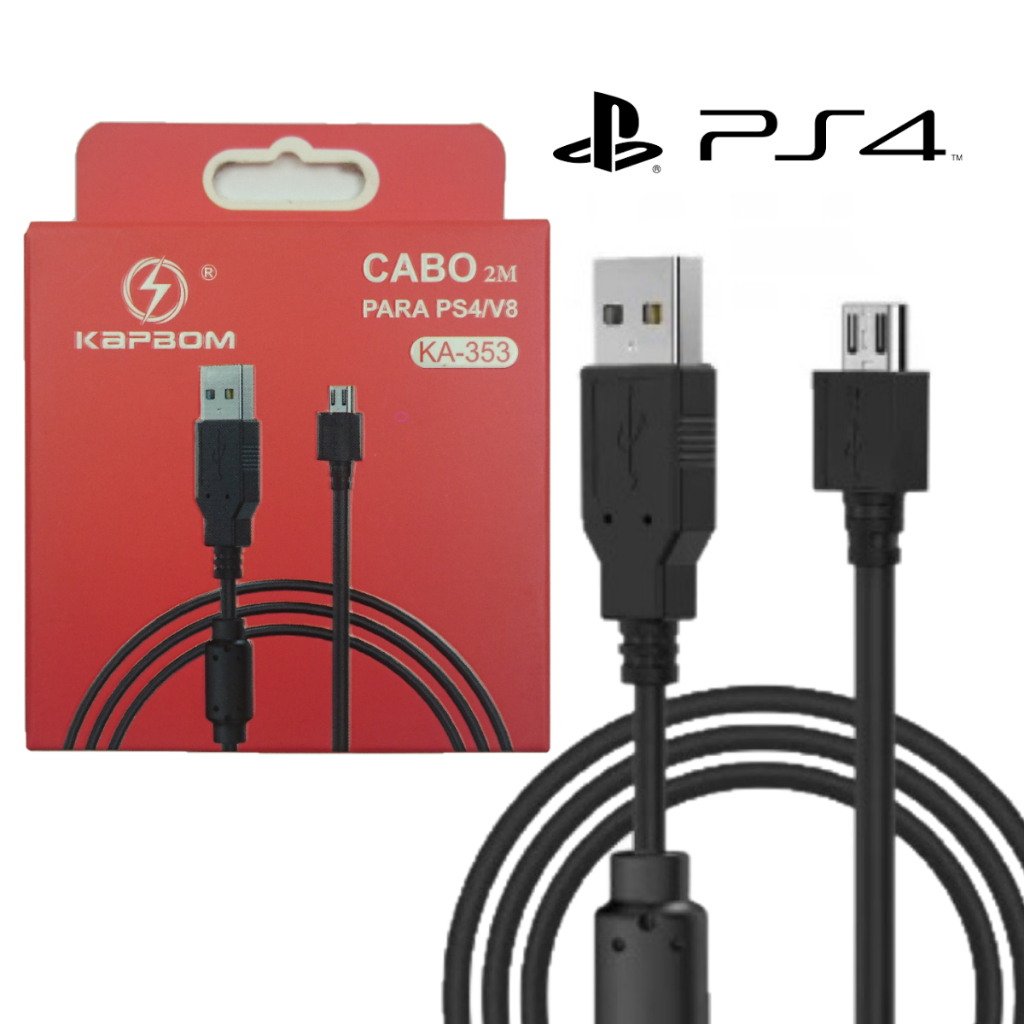 Cabo Carregador Para Controle Manete Ps4 Play 4 Kapbom 2m Com Filtro
