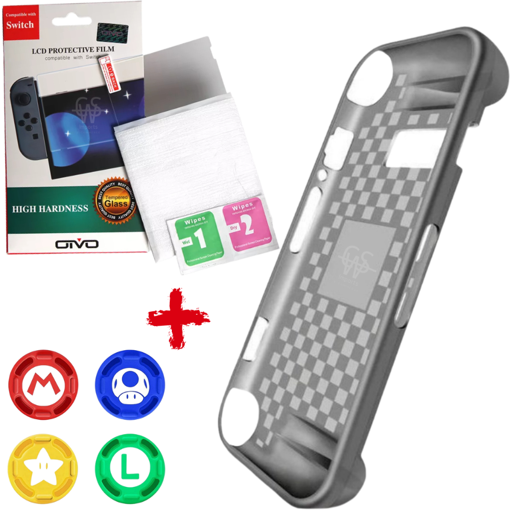 Case Capa Tpu para Nintendo Switch + Pelicula De Vidro + 4 Grip Proteção