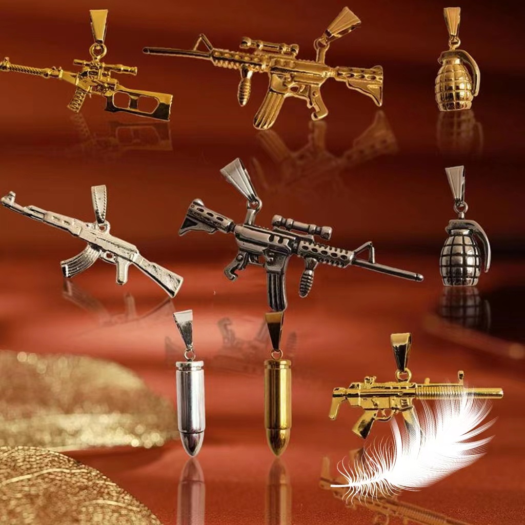 Colar de gargantilha Arma M4 em liga de metal refinado, com pingente em forma de arma, para moda masculina hip-hop. Disponível em acabamento em ouro e prata com detalhes em crist