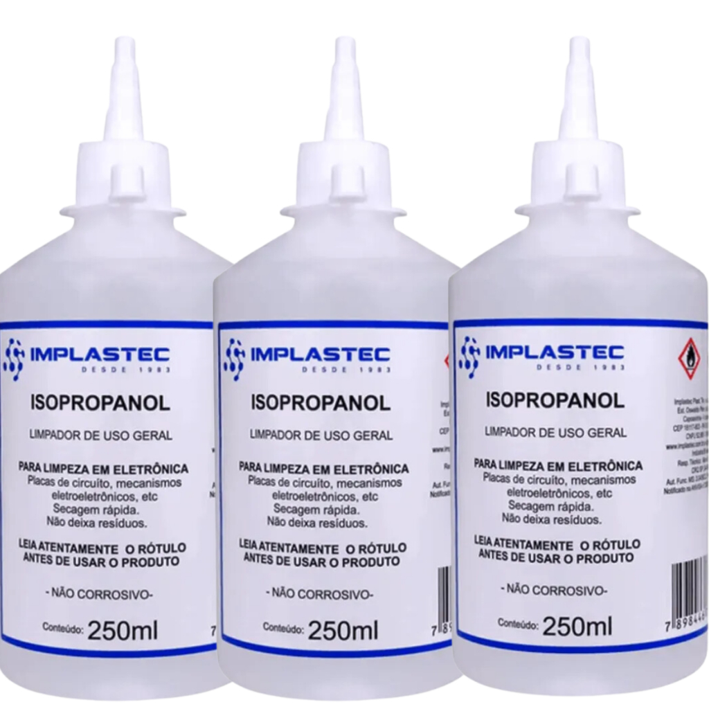Kit com 3 Álcool Isopropilico 99,8% Puro Isopropanol Limpador de Uso Geral, Limpeza Eletrônicos, Placas e Circuito