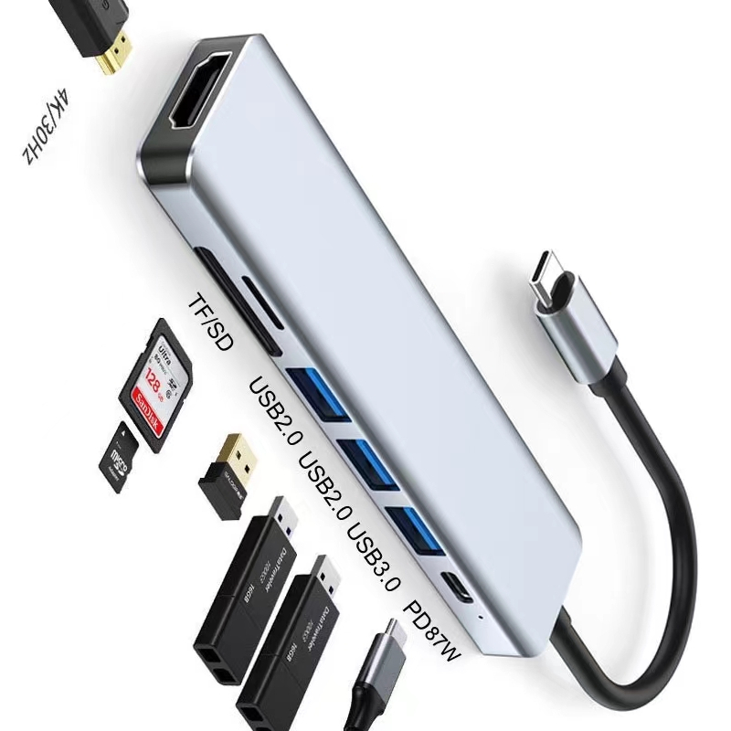 Hub USB tipo C 7 em 1 HDMI Thunderbolt 4K USB 3.0 Otg adaptador HDMI-comble Tf Sd Solt Pd carregador divisor Macbook laptop