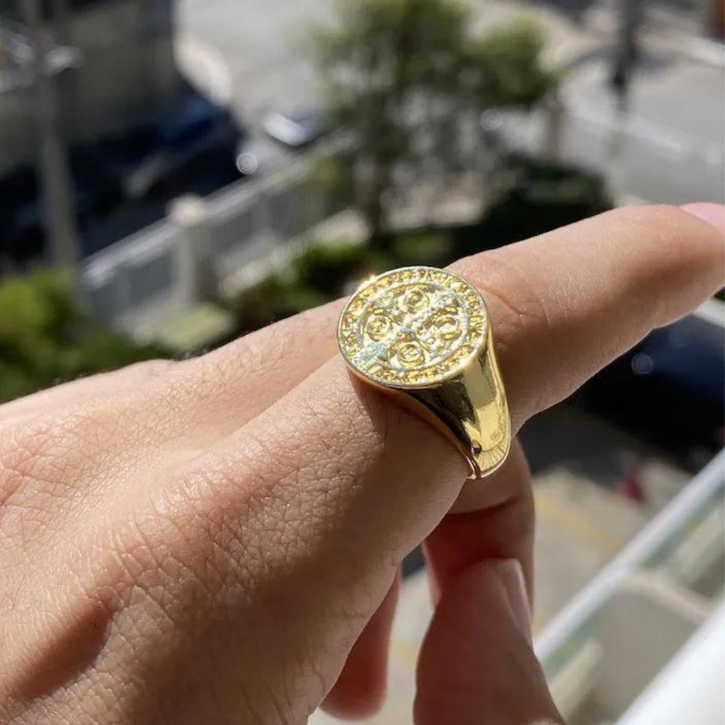 Anel de São Bento Banho de Ouro 24K Anel Masculino Banhado Anel Dedeira