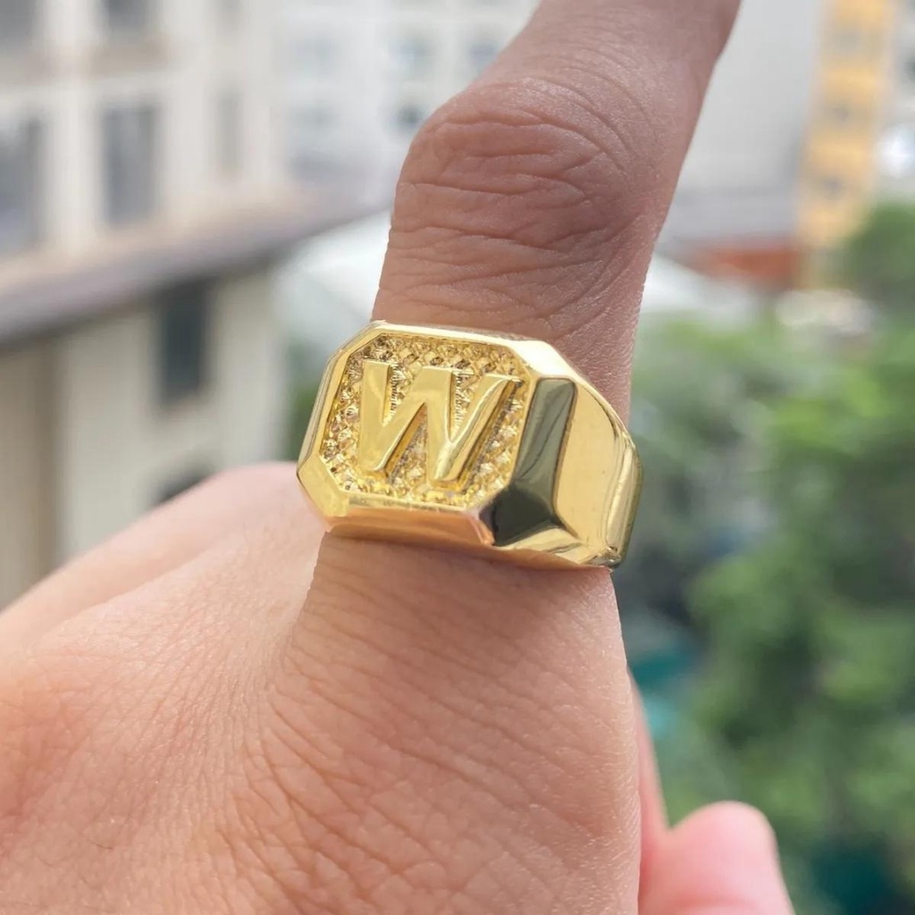 Anel Masculino De Ouro Anel De Letra Banhado a Ouro 24k Dedeira Letra W