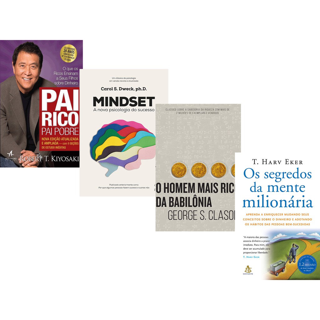 Kit Livros Mindset+ Pai Rico Pai Pobre+ Homem Mais Rico da Babilonia+ Os Segredos da Mente Milionária