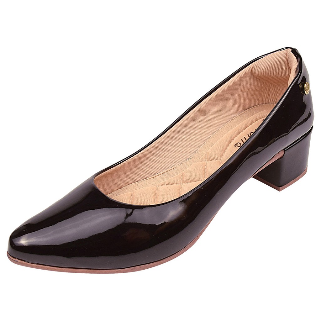 Sapato Scarpin Feminino Liso Confort Salto Baixo Grosso Verniz Promoção