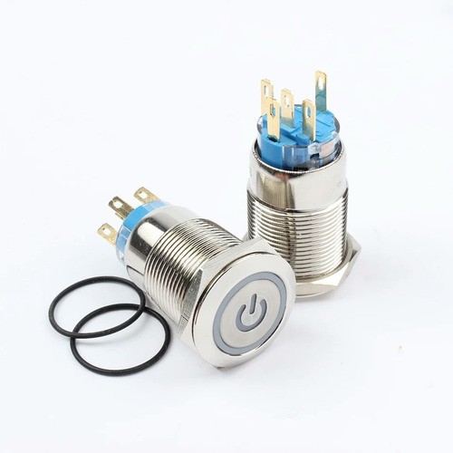 Botão Interruptor Liga Desliga On Off Power 19mm C/ Trava C/ Led Inox Resistente Água Não Enferruja Antivandalismo