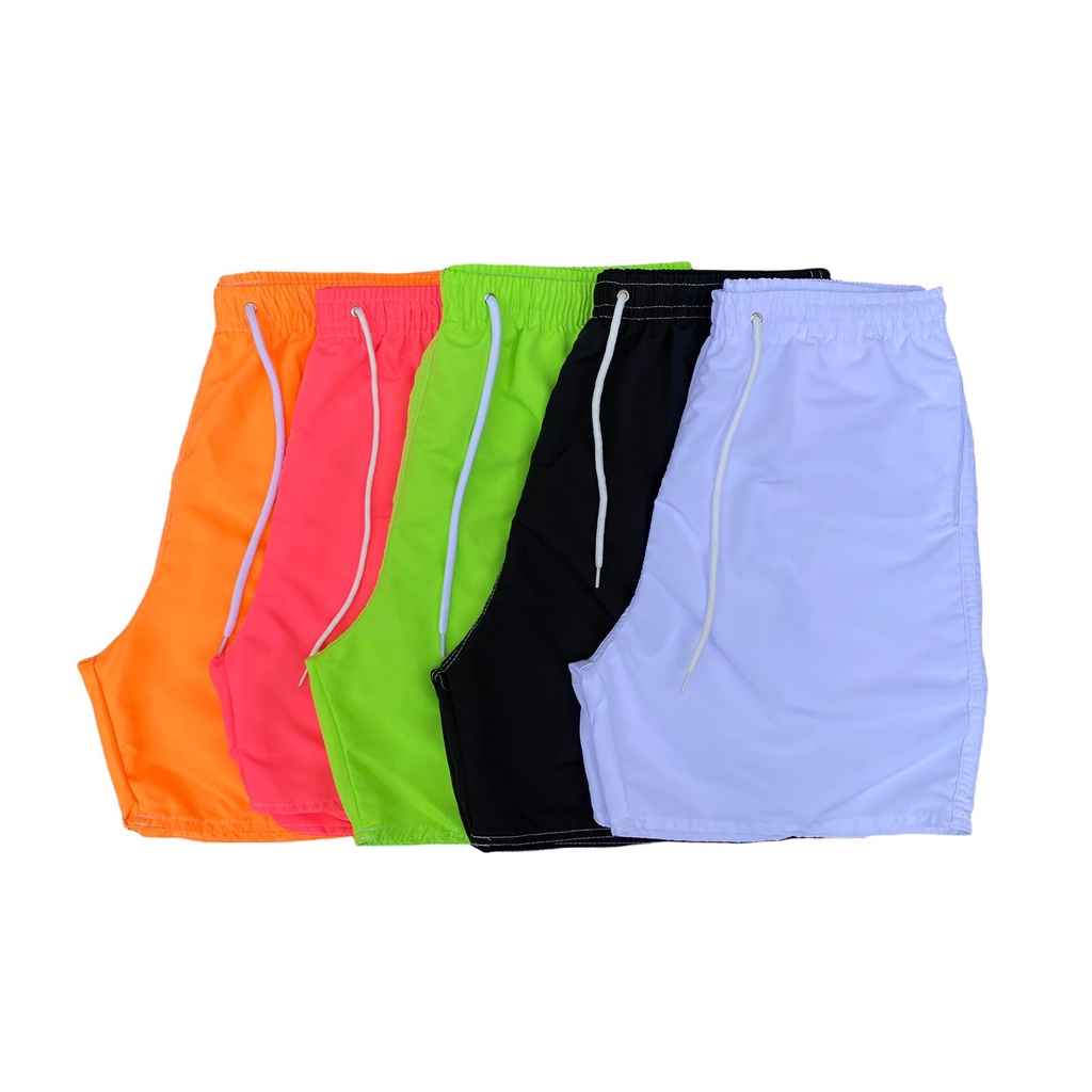Kit 2x Shorts Neon Fluorescente Tactel Praia Bermuda Confortável Para Dia a Dia Colorido Masculino Neymar Caminhada Treino Academia Mauricinho Verão 2022